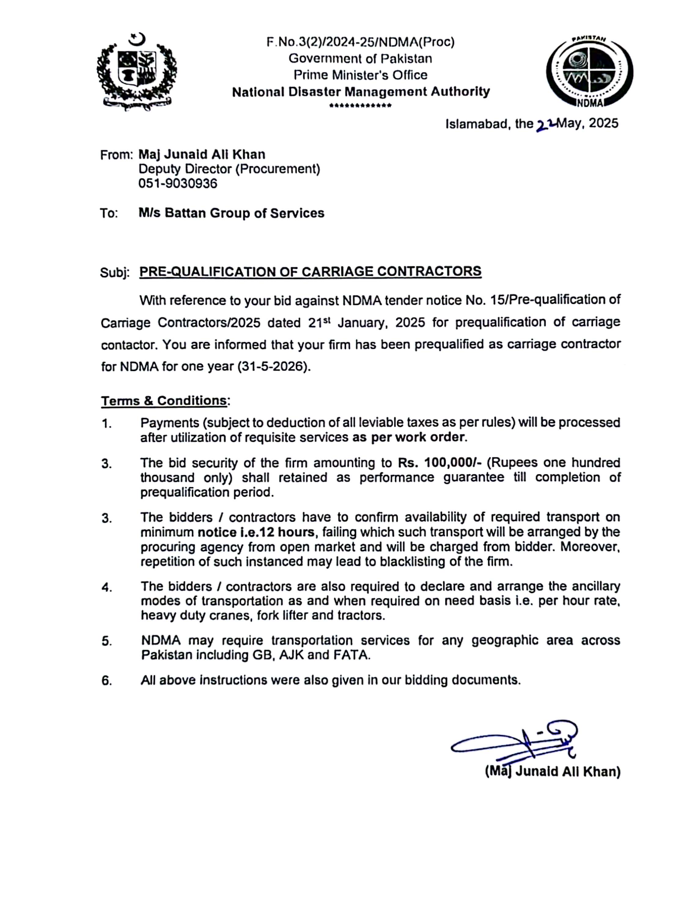 Pre-qualification of Carriage contractors
