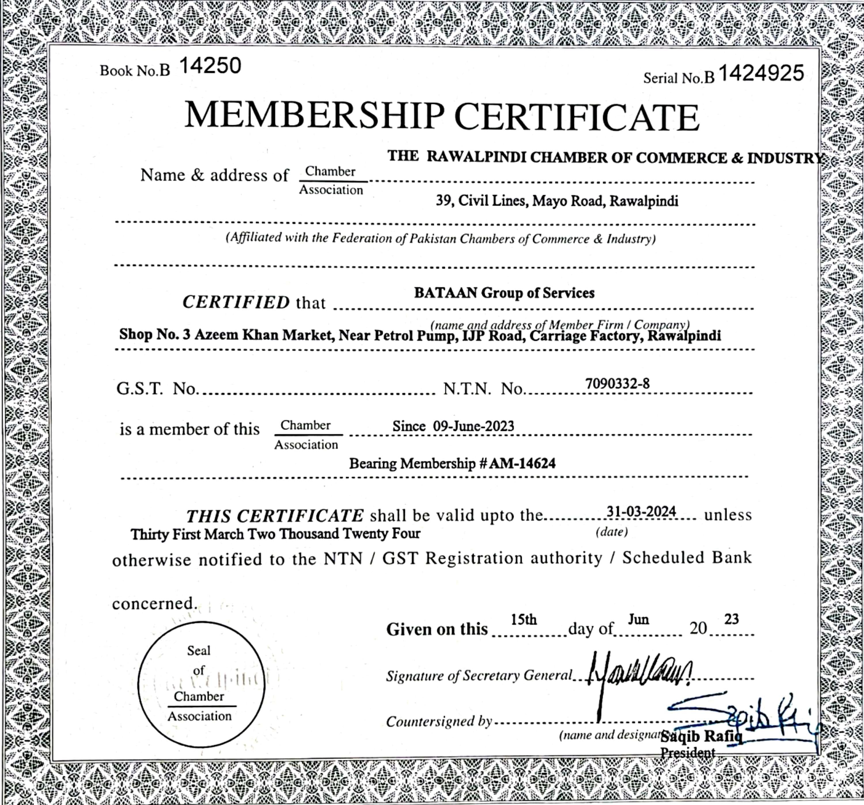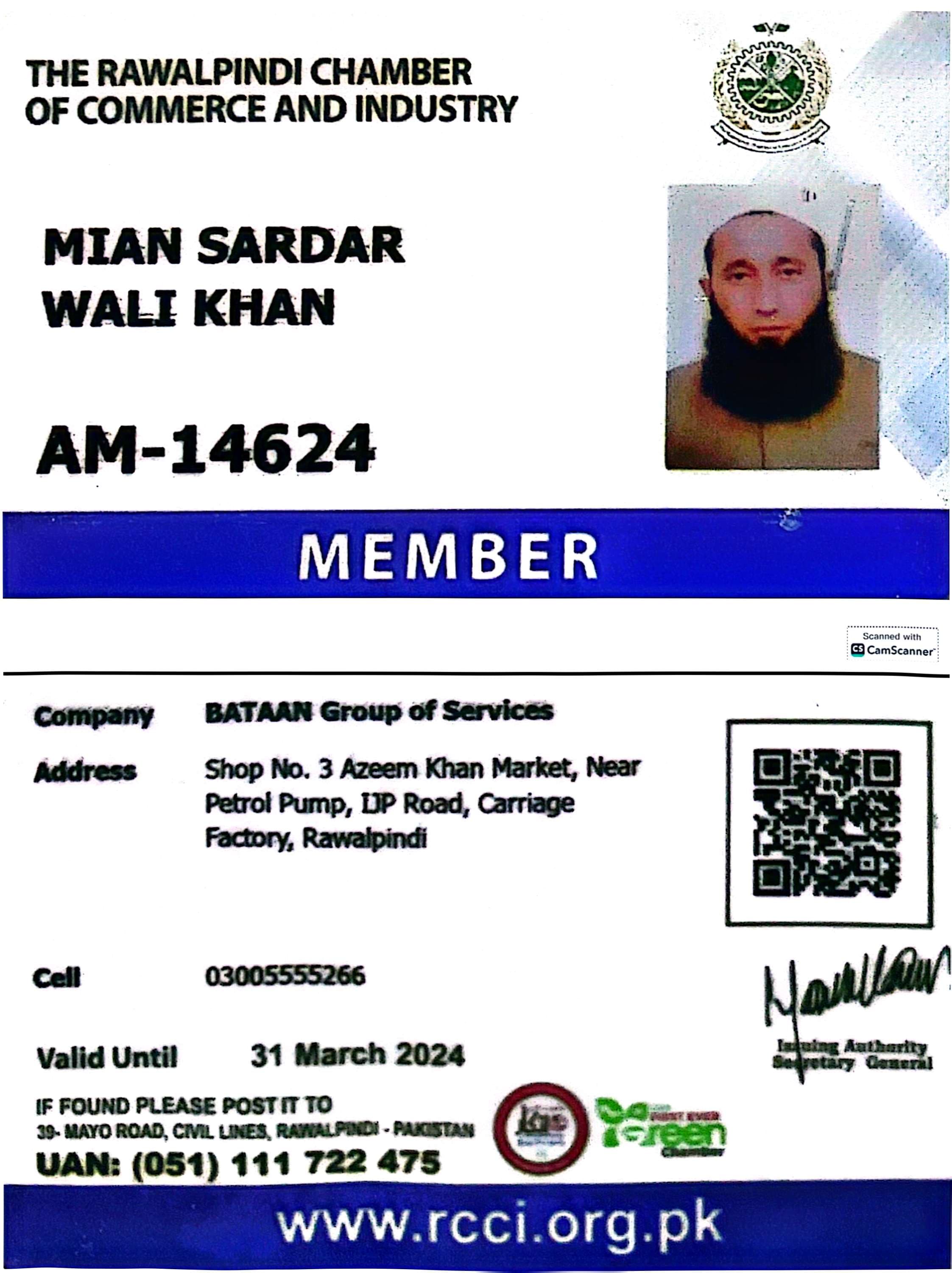 Membership with Rawalpindi Chamber of Commerce & Industry (RCCI)